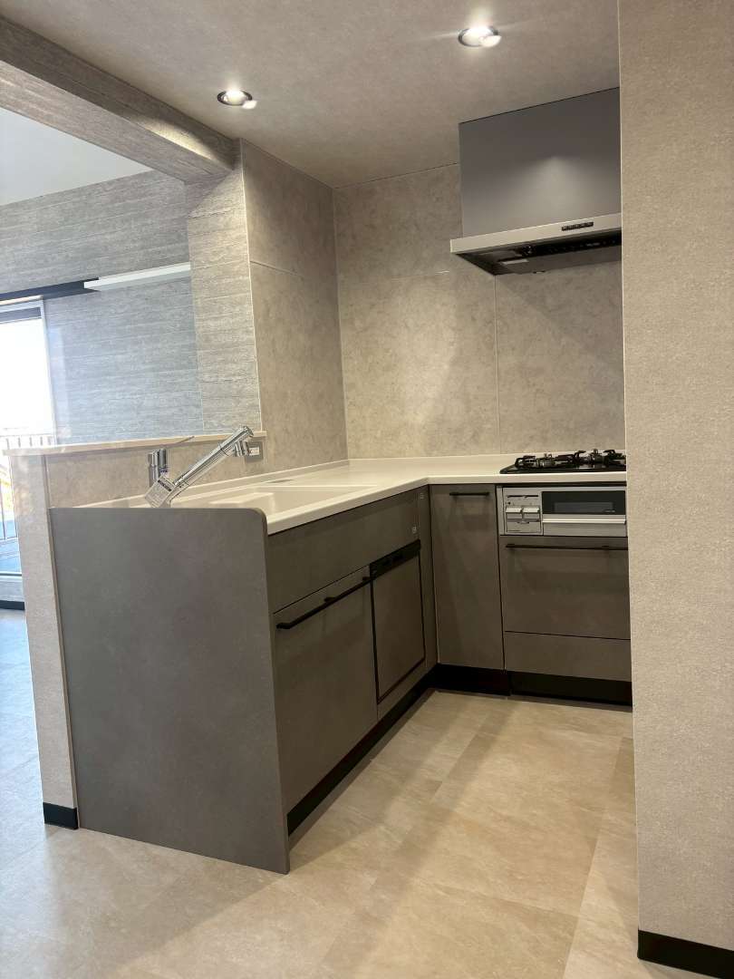 成活ハウスサービスでは、築古マンションや団地を最新の技術と独創的なアイデアでリノベーションを行っています。 ダークグレーを基調にしたシス…