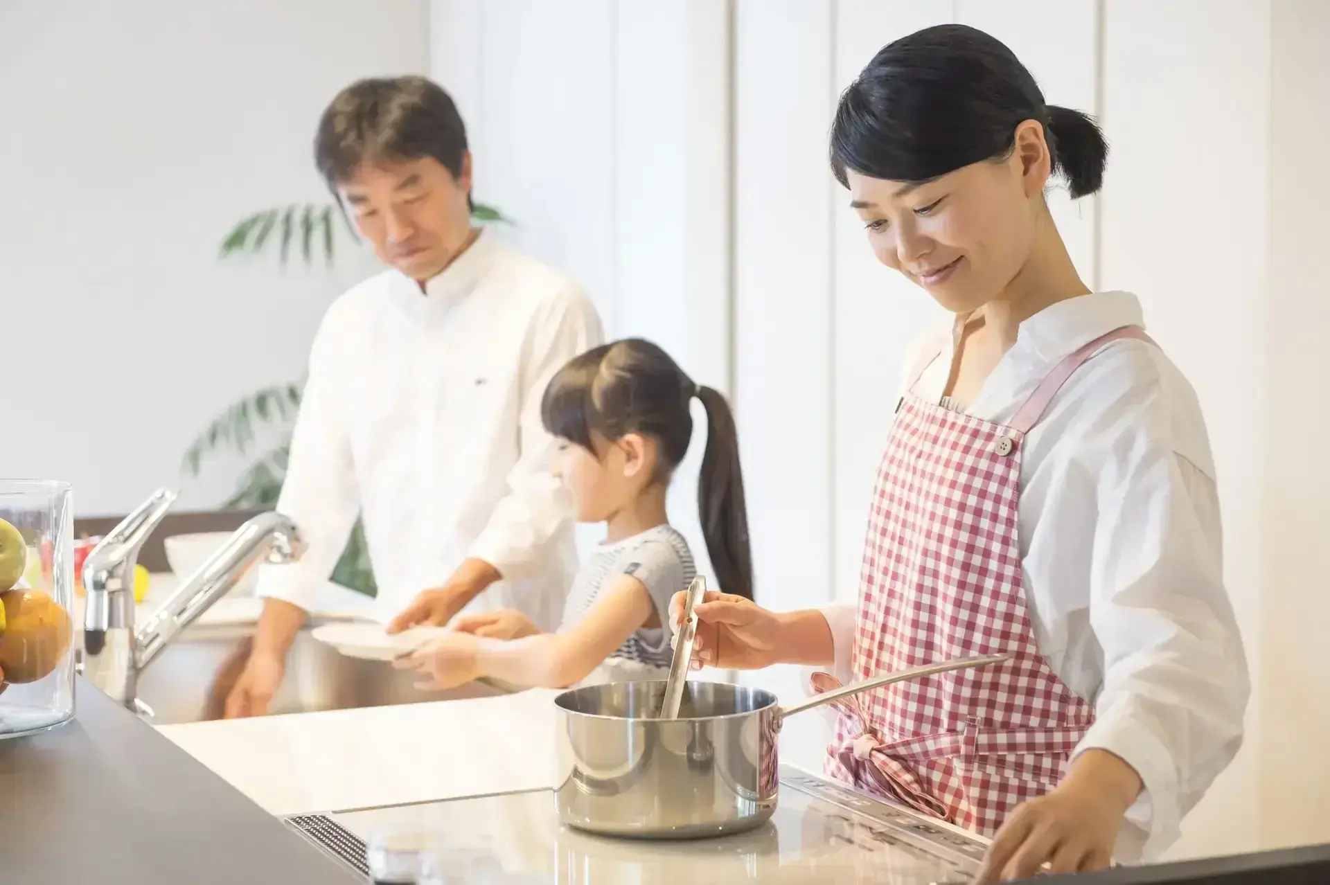 効率的な家事ができる住まい。家事動線を最適化し、機能的な設備を導入することで、家族みんなが協力しやすくなります。